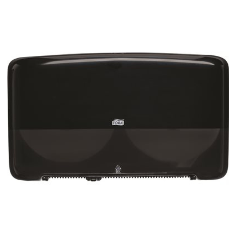 Distributeur double de papier hygiénique en rouleau mini jumbo blanc pouvant contenir deux gros rouleaux grande capacité et permet donc à garantir la disponibilité continue de papier.