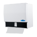 Distributeur pour papier à main plié ou en rouleau sans barrure. Ce produit distribue les serviettes manuellement et ne nécessite aucun levier ou interrupteur supplémentaire pour fonctionner. Ce produit est également universel; ce qui signifie que l'unité distribue du papier des producteurs de papier commercial standard.