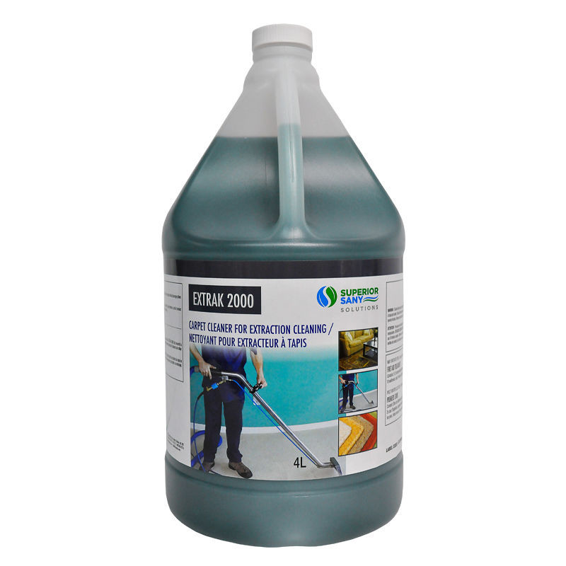 Nettoyant à tapis hautement concentré conçu spécialement pour le nettoyage à l'aide d'un extracteur à tapis. Extrak 2000 permet d'extraire la saleté des tapis sans abîmer les fibres ni laisser de résidu collant. De plus, Extrak 2000 est agréablement parfumé et laissera une odeur de fraîcheur dans la pièce après le nettoyage.