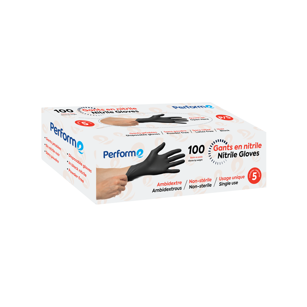 Gants de nitrile jetables noir 5 mil grandeur petit. 100 gants par boîte.