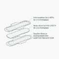 Découvrez les serviettes menstruelles à ailettes composées uniquement de coton 100% biologique, sans aucune substance chimique. Les serviettes menstruelles sont conçues spécialement pour vous accompagner tout au long de votre journée, quelle que soit votre activité, dans un confort optimal ! Leur douceur, finesse et capacité d'absorption en font un choix idéal pour les journées bien remplies.